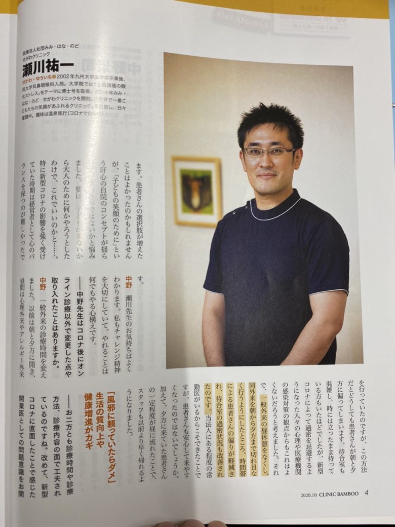 クリニックのマネジメントノウハウを集めた情報誌「クリニックばんぶう」の10月号に、