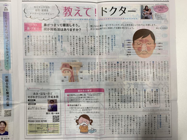 今回のご質問は「こどもの鼻がつまって寝苦しそう。対処法はありますか?」というものでした。